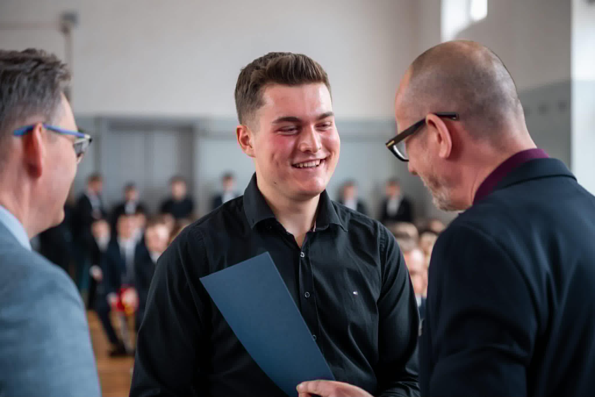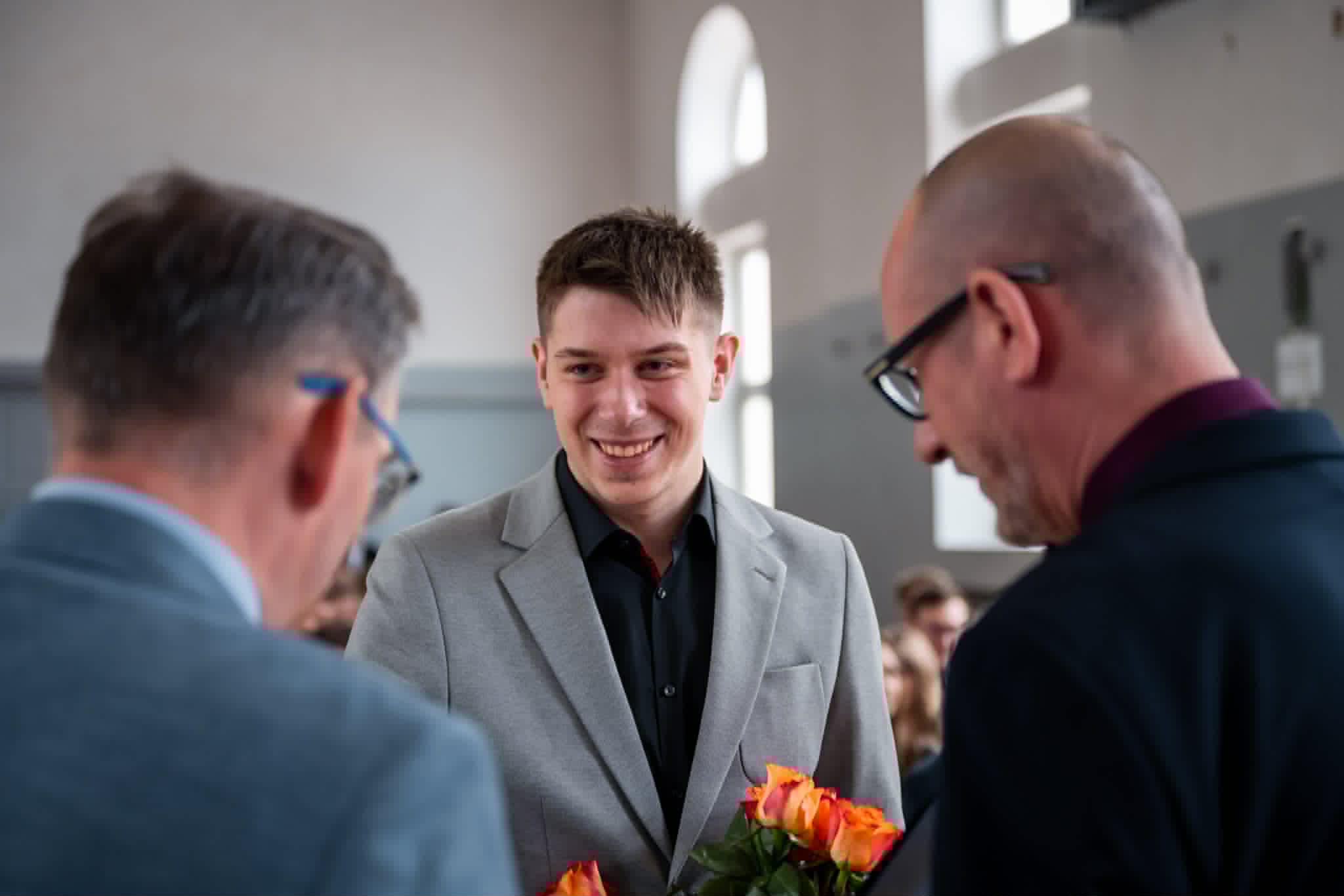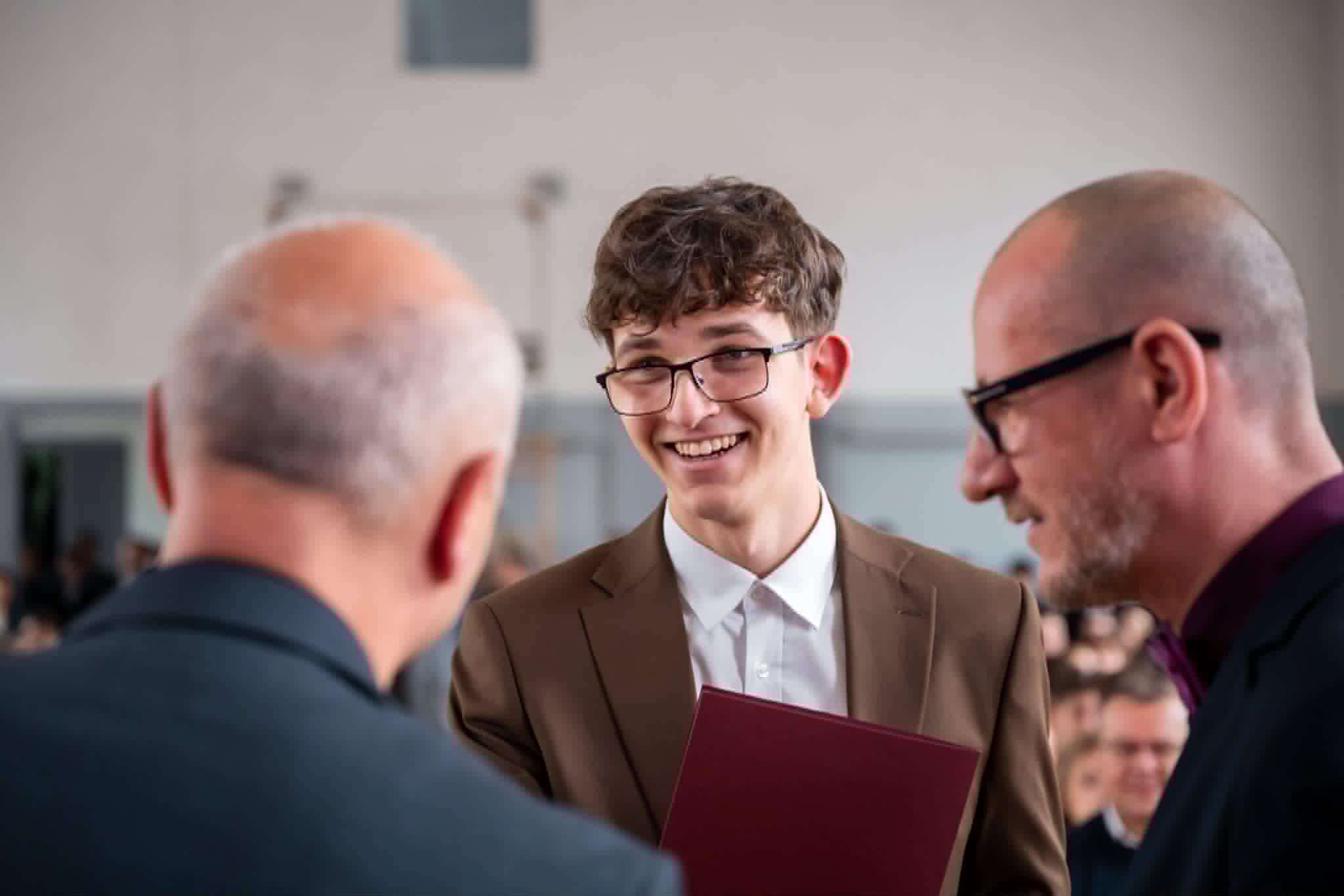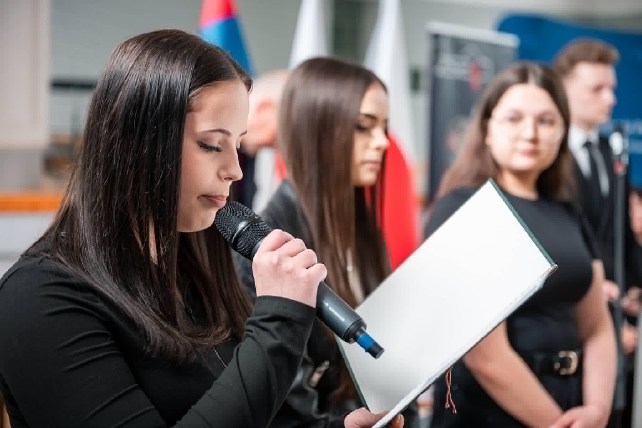 Następnie wręczył statuetki za wybitne osiągnięcia w nauce, które otrzymali: uczeń technikum Grzegorz Pawlak z klasy 5ti1 oraz uczennica liceum Zuzanna Mastalerz z klasy 4B.